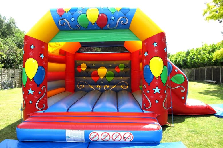 With its delightful party-going imagery depicted within its interior and exterior; highly colourful graphics depicting balloons, streamers and sparkling stars, and surrounded by its bright yellow sun ray effect – this one's guaranteed to provide the wow factor from all in attendance. bouncy castles come into their own when hired for all events and occasions For Adults and children , such as a school fair or village festival, it's still great to have activities that all ages can enjoy and there's no reason why the children can't jump on the castle with mum and dad!