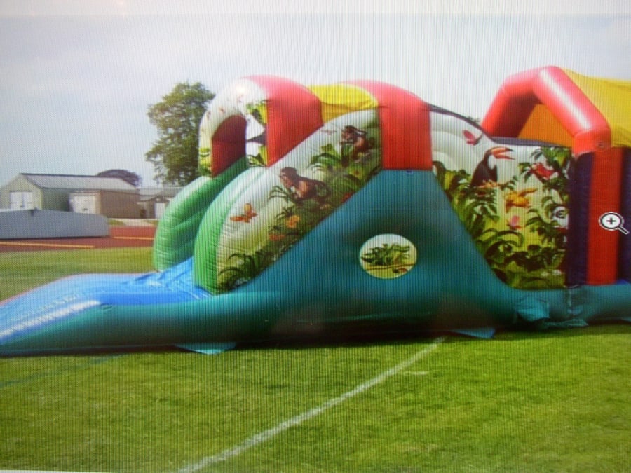Perhaps, some will choose to be Baloo as they embark on a journey of discovery through this highly acclaimed jungle fun run with its life-sized film characters beautifully hand painted with so much attention to detail. The children will be active for hours on end as they bounce and jump their way to the cargo net and slide down the overflowing waterfall which comes in the form of a huge 6ft slide. If you have a good-sized garden why not hire this inflatable fun run as a way to bring much fun to your family BBQ, get all the neighbours round and make it an evening to remember. If you're holding a community fundraiser, this inflatable would be perfectly placed on your local school field and will attract crowds of people wishing to pay for a session on the fun run, thus helping you raise funds for your cause.